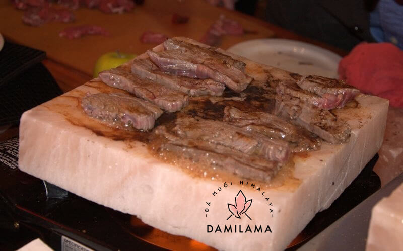 Cách nướng bò cũng rất đơn giản, bạn làm nóng đá muối sau đó để thịt bò trực tiếp lên đó, nhiệt trên tấm đá sẽ luôn giữ ổn định, đảm bảo cho món ăn chín nhanh, giữ nguyên vị ngọt và chất dinh dưỡng, tránh làm thịt bị khô hay cháy khét.